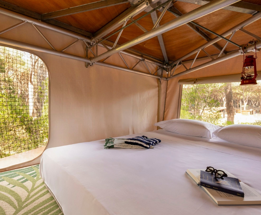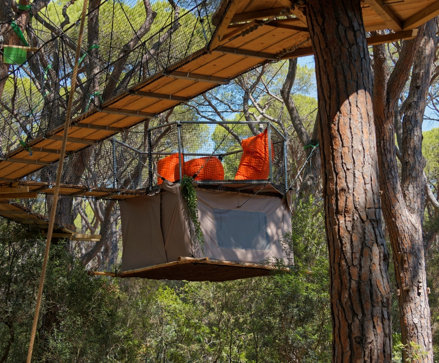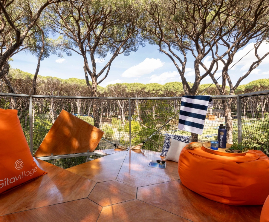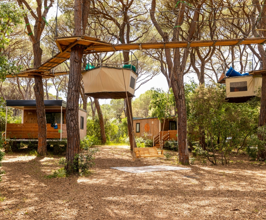 The Air Dream Suites in Castiglione della Pescaia, in the heart of Gitavillage Le Marze, allow you to enjoy a truly unique experience in Tuscany: a modern and comfortable lodge on the ground floor and, above you, a suspended module nestled among the maritime pines.