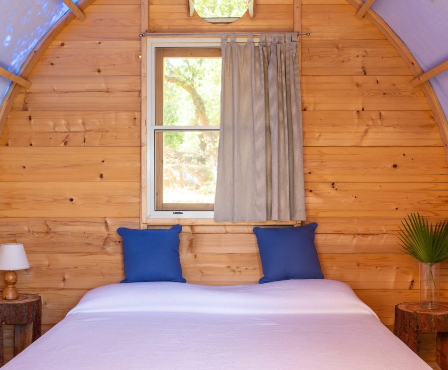 A compact and cozy space with a double bed, created for those who appreciate simplicity. Here you sleep surrounded by the scent of wood, with the natural soundtrack of the pine forest.