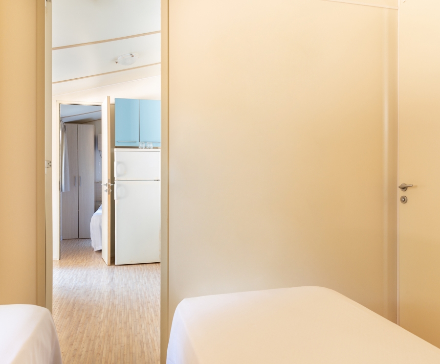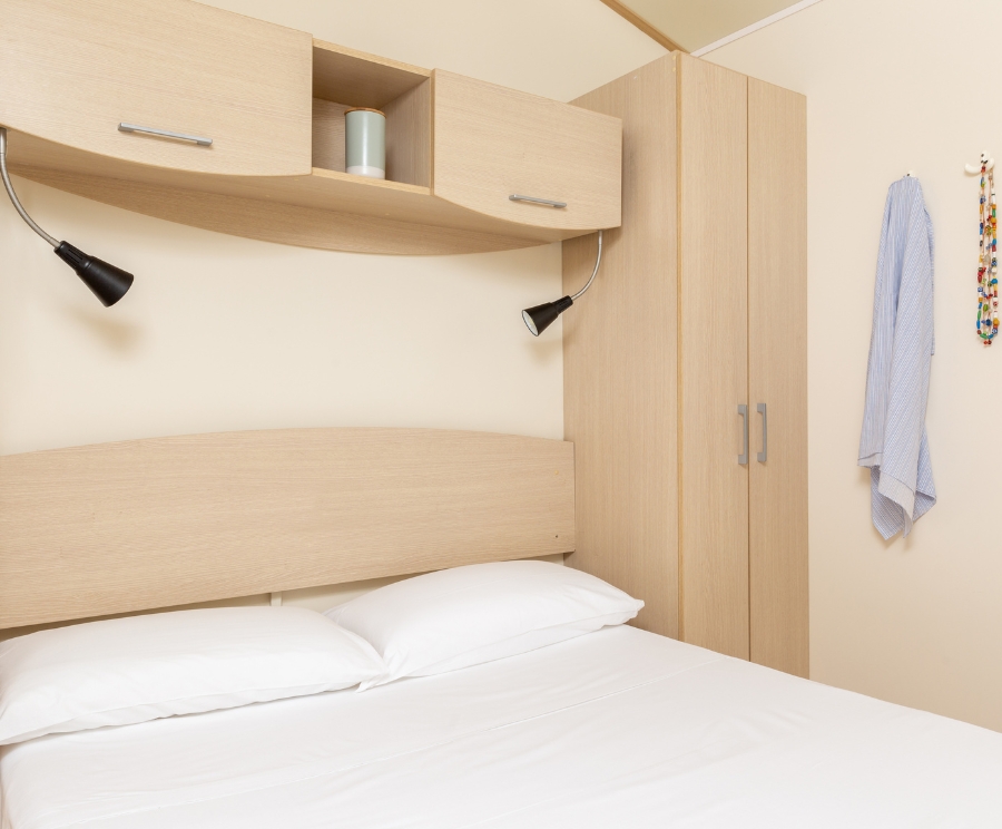 Uno spazio riservato con letto matrimoniale, armadio e prima fornitura di biancheria, è ideale per assicurare riposo e tranquillità anche quando si viaggia in famiglia.
