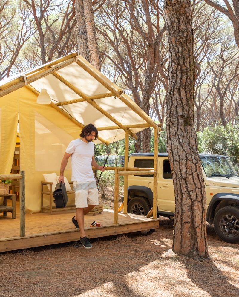 La Tenda Safari è un RIFUGIO GLAMPING spazioso e curato in ogni dettaglio, per chi vuole vivere l’AVVENTURA senza rinunciare al piacere di ambienti eleganti e confortevoli. Completamente immersa nella natura, ti offre un’esperienza suggestiva tra PINETA, DUNE e MARE aperto.